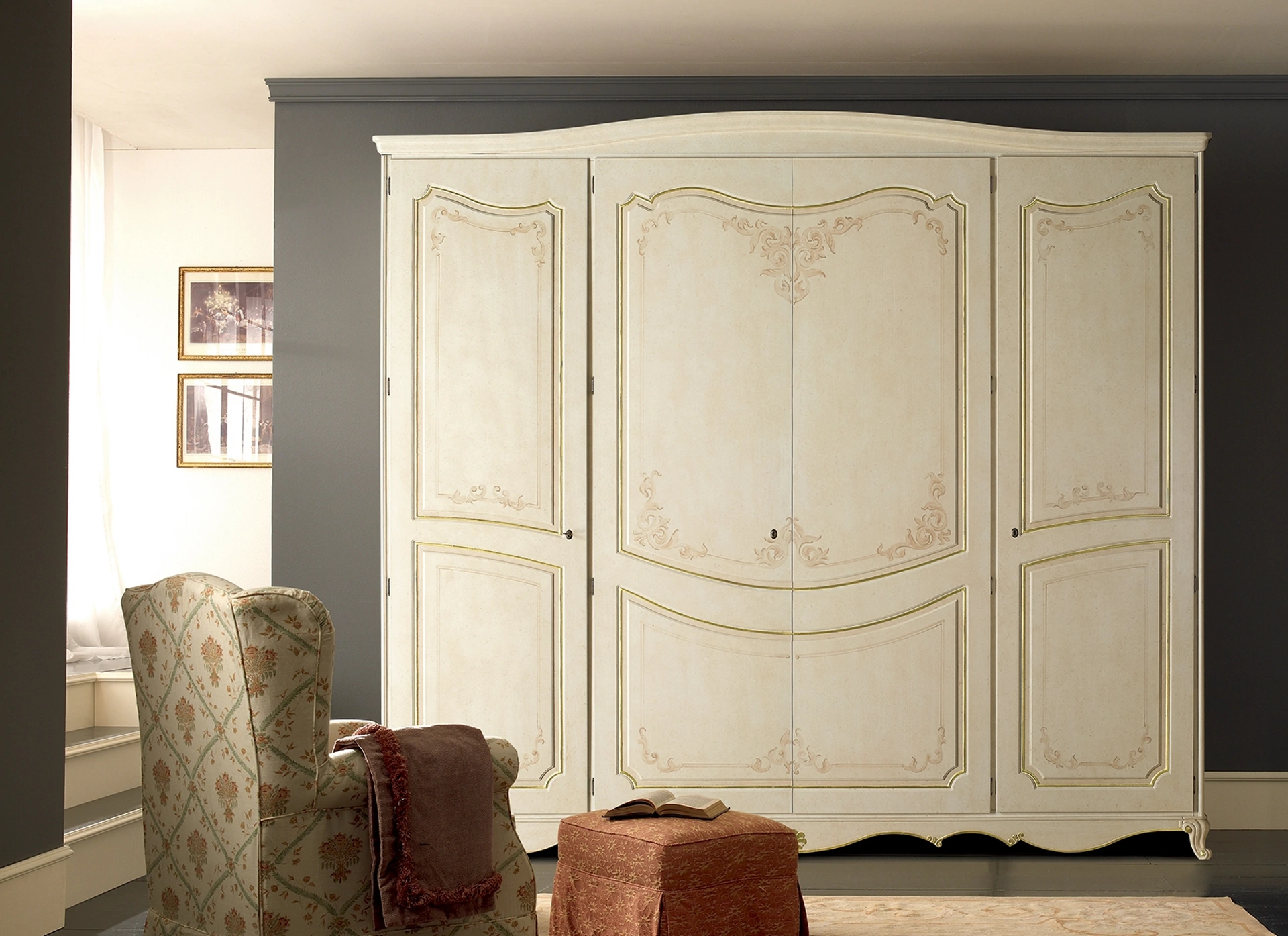Armadio Elisabetta di Flex: compila il form, contattaci e dai vita alla stanza del relax come l'avevi sognata. Contattaci per info e preventivi e potrai ultimare la zona del riposo che hai sempre voluto grazie ad una ricca offerta di mobili contenitori classici come questo guardaroba in laccato opaco nell'immagine. La zona del riposo è dedicata al relax, deve perciò risultare arredata al meglio e completa di mobili e complementi capaci di creare un'atmosfera sempre rasserenante. Gli Armadi e le cabine armadio con ante battenti devono arredare la camera da letto garantendoti una perfetta ottimizzazione degli spazi e un'esclusiva ricerca stilistica.