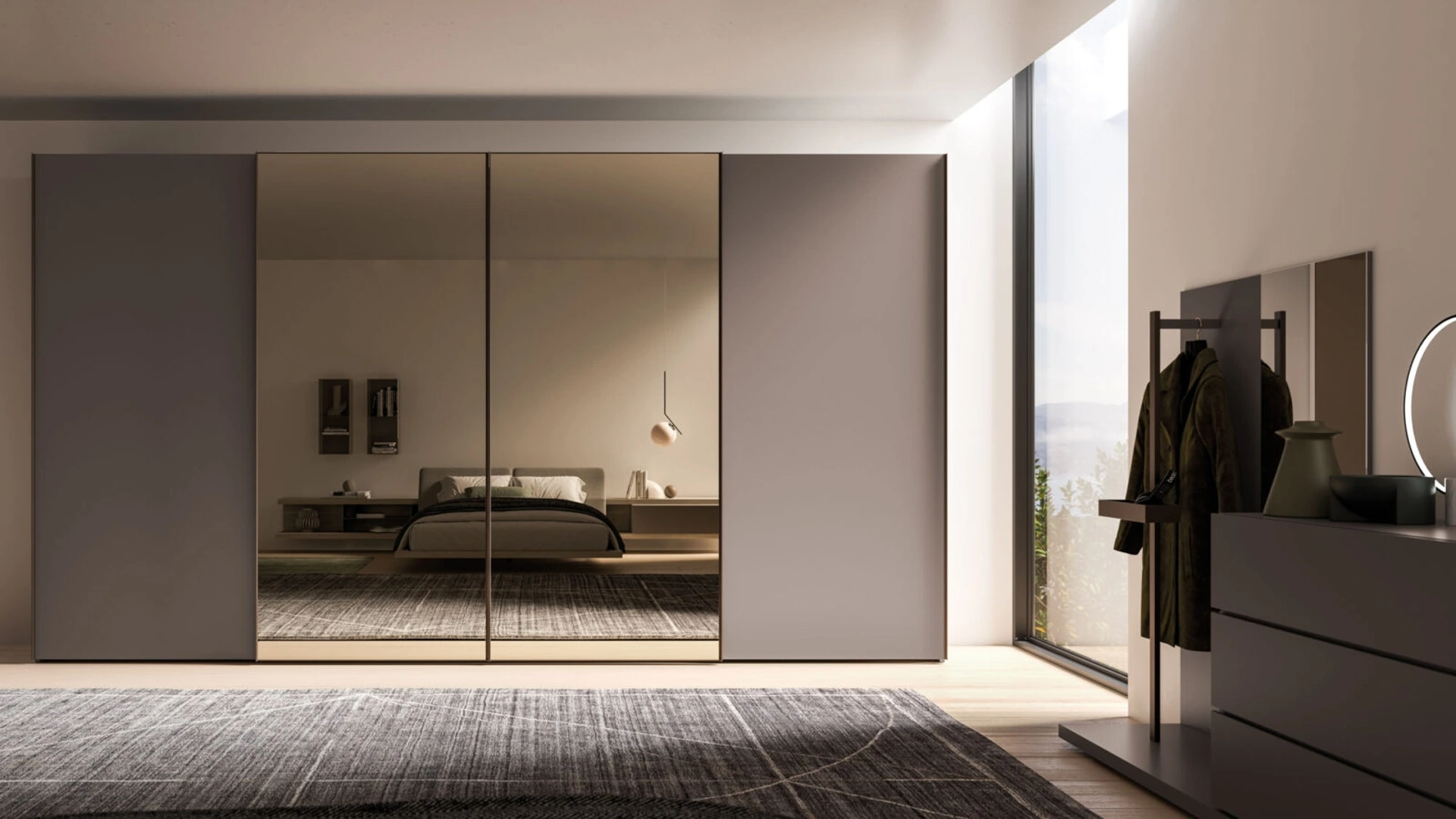 Gli Armadi a muro con ante scorrevoli sono componenti irrinunciabili in camera, per renderla ammobiliata al meglio, pratica e completa di tutto. Per progettare alla perfezione una stanza funzionale ed esteticamente gradevole, prediligi le più originali soluzioni dei migliori brand, letti, armadi e comodini di grande design. Contattaci e ottieni informazioni sulla nostra collezione di Arredamento Casa a Tivoli: avrai la possibilità di completare la zona notte potendo usufruire di una diversificata disponibilità di mobili contenitori moderni, come l'armadio in laccato opaco nell'immagine.