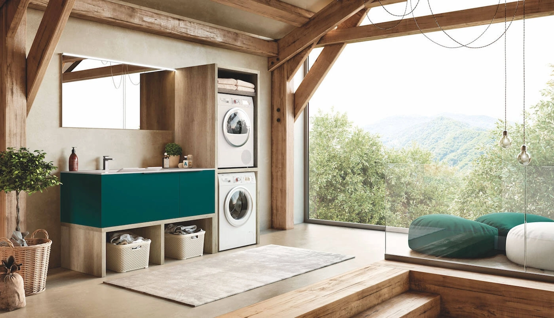 Con un'ampia gamma di composizioni arredative della firma Puntotre potrai organizzare il bagno nei più piccoli particolari, risolvendo le tue esigenze abitative. Le cromie, le finiture e glimoduli che il brand rende disponibili per l’Arredo Bagno moderno con mobili bagno per lavanderia consentono di organizzare differenti contesti. I bagni di casa cambiano sia per eleganza che per dimensioni, perciò è imprescindibile che ognuno trovi la soluzione ideale per le proprie esigenze. La stanza da bagno è lo spazio deputato al relax e alle pratiche di cura della propria persona, perciò va arredato mixando doti di praticità e design. Qui ti proponiamo il modello di Mobile da Bagno per lavanderia Laundry 08 di Puntotre in laccato opaco che connota in modo ottimale lo spazio garantendo la praticità.