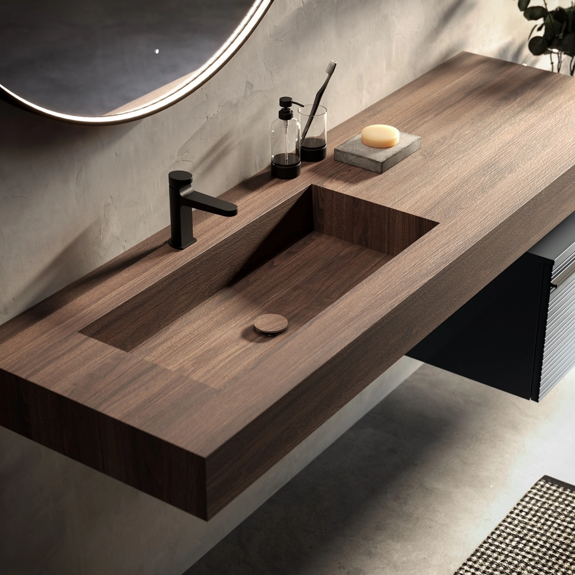 Puntotre produce progetti per l’Arredo Bagno moderno con mobili bagno sospesi che coniugano design unico e grande ergonomia, come questo interno richiede. In showroom potrai vedere dal vivo le più originali composizioni arredative del rinomato marchio: ti accoglieremo per arredare insieme il tuo bagno. Il modello Mobile da Bagno Reverso 12 di Puntotre in polimerico fa parte della completa serie di arredi per il bagno del brand, sempre di grande valore estetico. Bello e funzionale in ogni stanza da bagno, un modello in polimerico moderno come quello nell'immagine risolverà le tue problematiche abitative di ogni tipo. Materie prime di qualità e una ricca gamma di colori assicurano una progettualità dettagliata e materiali di prima scelta resistenti a differenti sostanze.