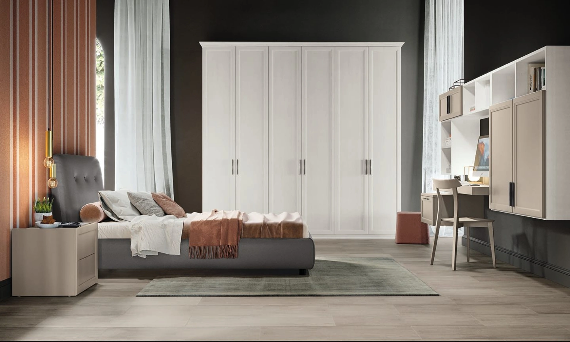 Colombini Casa asseconda lo stile dei bambini e le esigenze degli adulti con le sue Camerette classiche componibili, ideali per esigenze di ogni genere. Con una composizione arredativa Colombini Casa, potrai ultimare con praticità e design l'ambiente dove i tuoi figli passano gli anni importanti della vita. La Cameretta Arcadia AC017 di Colombini Casa in melaminico è un universo complesso da decorare con cura, unendo diversi elementi accessori su misura. Vieni in negozio e potrai vedere dal vivo tutte le più originali composizioni d'arredo componibili classiche di Colombini Casa per i più giovani.