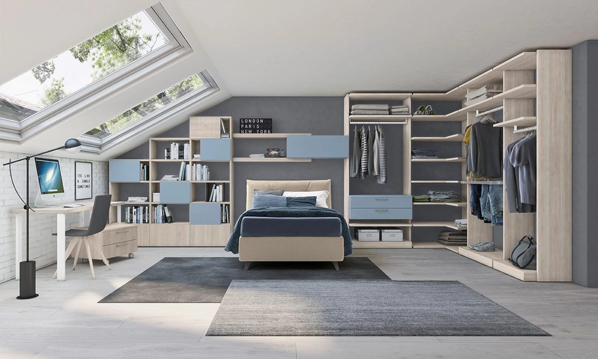 Presentiamo nel nostro punto vendita svariate Camerette componibili design per ragazzi del marchio, ideali per seguirli durante il loro sviluppo. I nostri bambini passano molto tempo del giorno nelle loro camere da letto: rendile adatte per fare i compiti, divertirsi e dormire tutti i giorni. Le Camerette dei nostri bambini sono lo spazio in cui cresceranno giocando e sognando, quindi è essenziale che lo spazio sia agevole. Con la Cameretta Golf Y21 di Colombini Casa in melaminico ti garantirai un perfetto accordo di ergonomia e sicurezza, ideale per la stanza dei tuoi bambini.