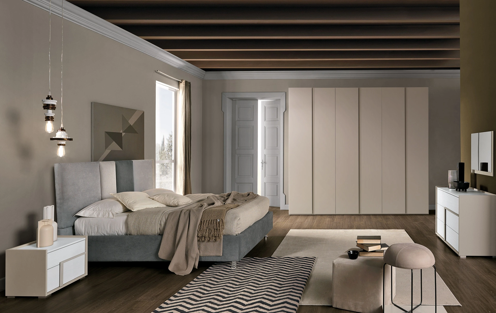 I Comodini, comò e gruppi notte possono essere abbinati al letto e al guardaroba oppure possono essere in voluto contrasto con essi: la scelta si baserà sulle reali possibilità di spazio e sulla ricerca di un ben dosato effeto finale. In showroom ti aspetta un ricco catalogo di mobili e complementi moderni del rinomato marchio, specialista nella produzione di Arredamento Casa a Tivoli per la zona notte. Il Gruppo Notte Abaco 108 di Giessegi è una tra le più originali soluzioni capaci di regalare un tocco di stile in più alla camera da letto, con l'uso di finiture di pregio.