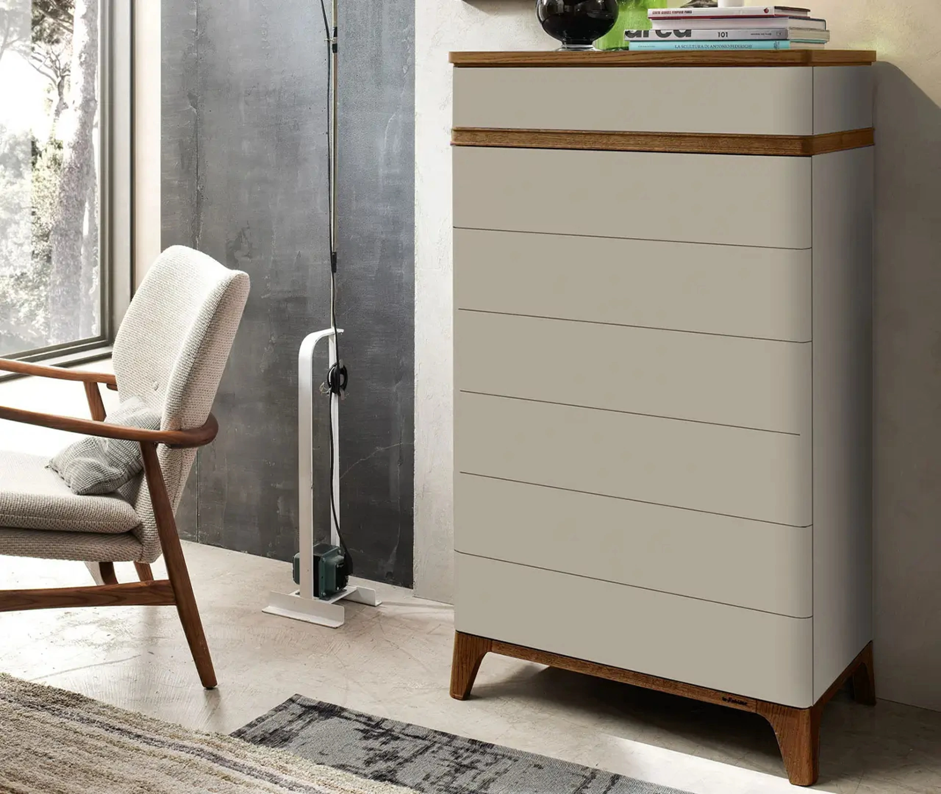 I Comodini, comò e gruppi notte possono essere coordinati al letto e all'armadio o possono essere in voluto contrasto con essi: l'acquisto si baserà sulle vere disponibilità di spazio e sulla ricerca di un equilibrato effeto finale. Il Cassettiera Atha di Le Fablier è una tra le più esclusive soluzioni capaci di apportare un accento di stile in aggiunta alla camera, confidando su finiture eccellenti. In showroom ti sta aspettando una ricca gamma di mobili ed elementi accessori moderni del rinomato marchio, specialista nella produzione di Arredamento Casa a Tivoli per la zona del riposo.