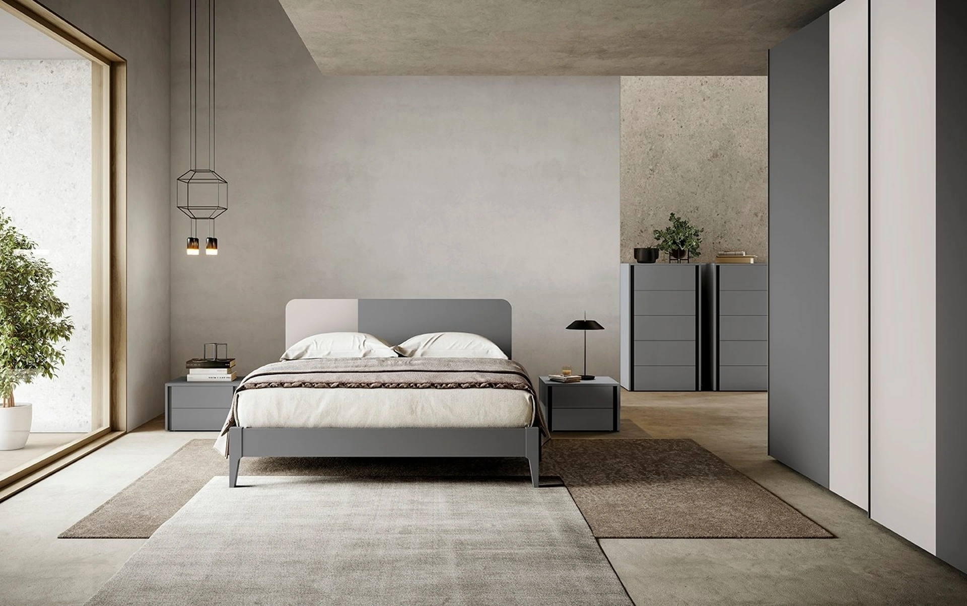Materiali pregiati e ottima fattura per il Gruppo Notte Chic di Colombini Casa in in melaminico, disponibile in showroom unitamente alle altre diverse offerte del brand, per fare della zona notte un luogo che rispecchi la tua personalità. Ti domandi come abbinare letti, armadi e comodini? Con il modello di Colombini Casa presente in foto avrai un arredo pensato per uno spazio dai richiami design.