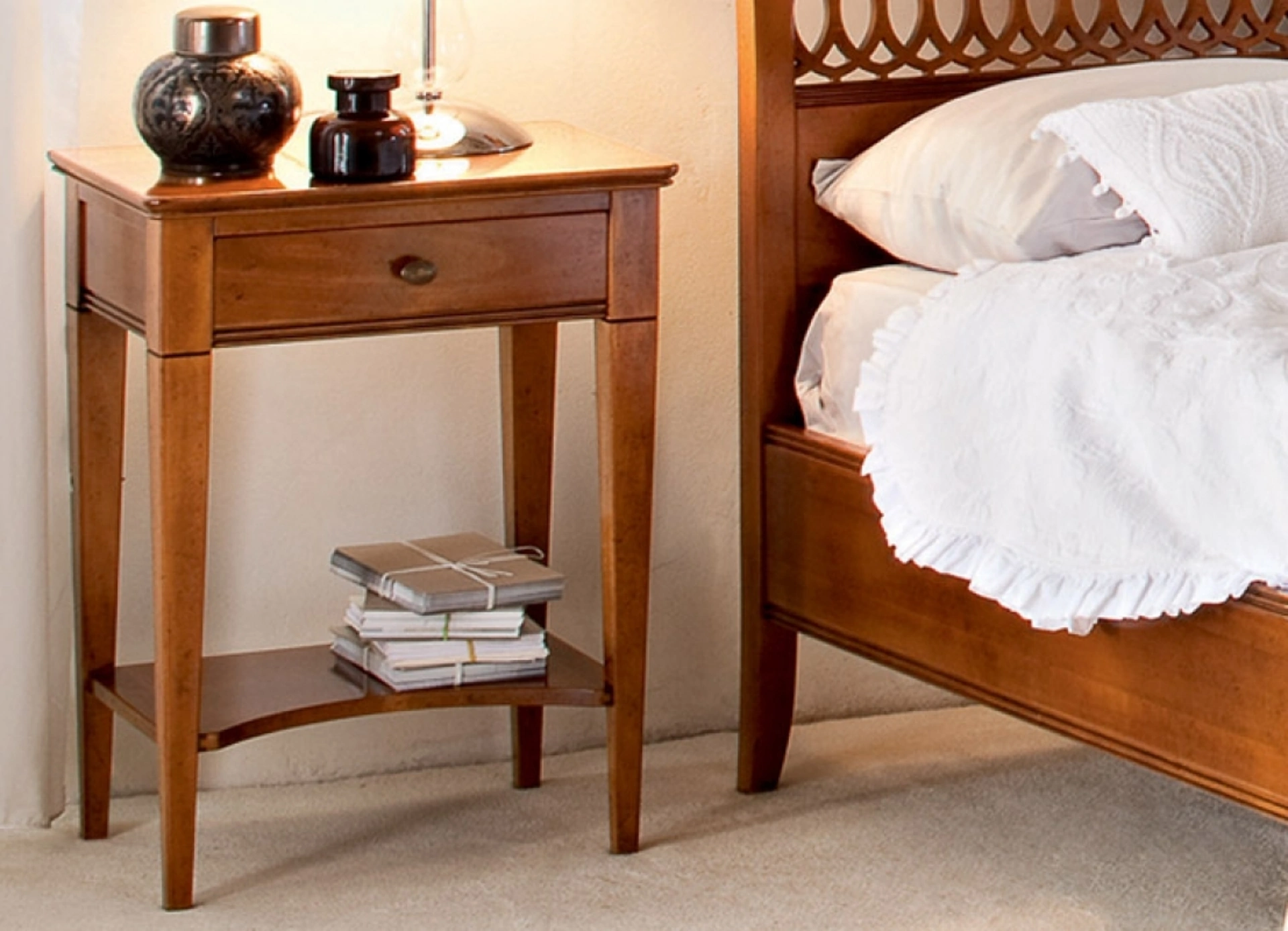 Valorizza i tuoi locali scegliendo composizioni di oggetti abbinati oppure ricrea voluti abbinamenti di stile e tonalità contando sul catalogo di mobili e oggetti accessori per la zona del riposo che proponiamo, come il modello in legno visibile in foto, anche realizzabili su misura per te. La zona del riposo contiene anche i Comodini: contenitori utilissimi che consentono di sistemare piccole cose e avere a disposizione piani di appoggio multiuso. Con i nostri gruppi notte classici del brand Le Fablier, specialista dell’Arredamento Casa a Tivoli per la zona del riposo, potrai ricreare la camera che hai sempre desiderato.