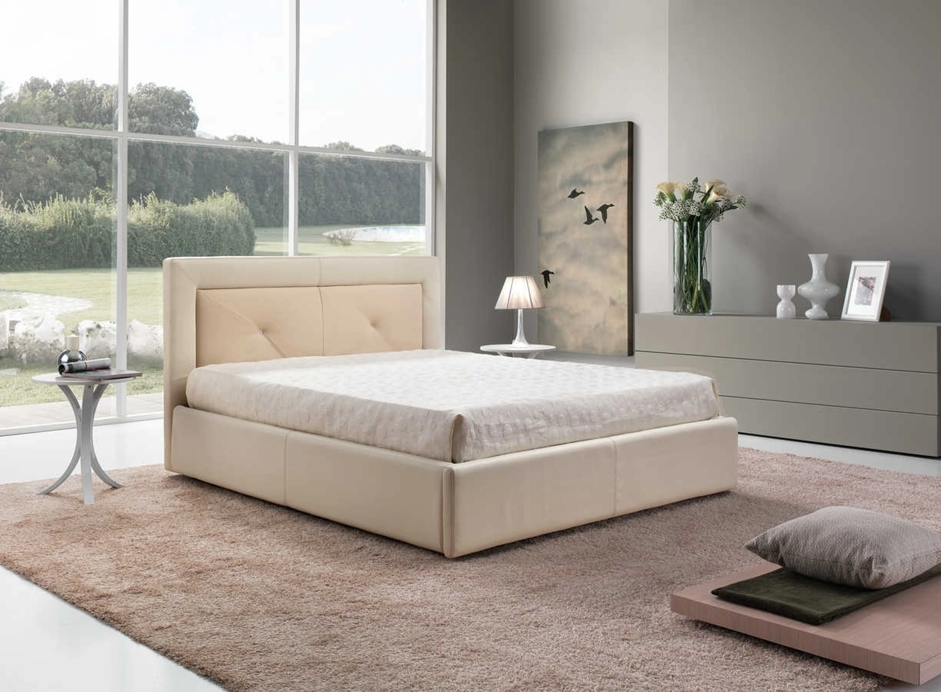 Per completare al meglio l'arredo della tua zona del riposo è di primaria importanza valutare gli abbinamenti del letto con armadi e comodini, elementi accessori e quant'altro: se vuoi arredi moderni, il modello in foto fa al caso tuo. Contattaci e scopri di più sulla nostra linea di Letti matrimoniali con contenitore: valorizza la tua camera con le nostre soluzioni. Il Letto matrimoniale con testiera Charme di Tancredi salotti è uno tra i prodotti più inediti dell'azienda, garanzia di durata nel tempo, qualità dei materiali e uno stile unico.