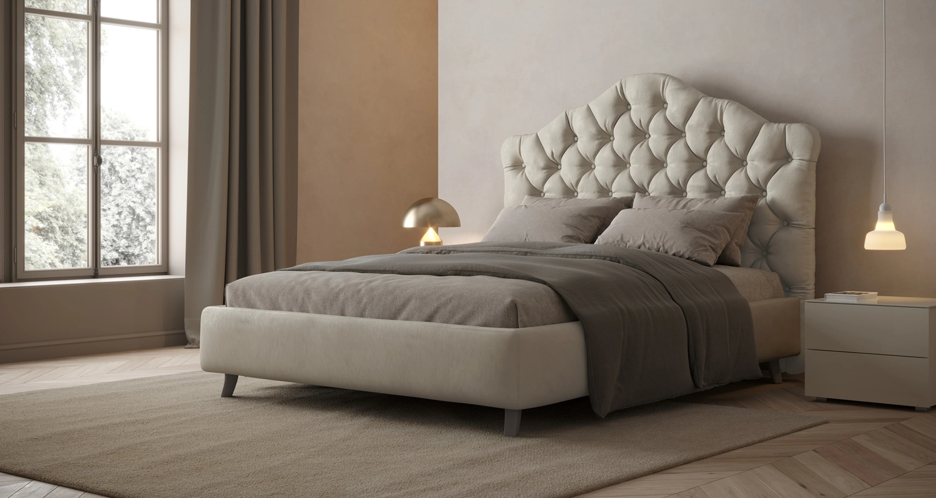 La camera è l'ambiente di casa che più rappresenta il gusto di chi la usa, locale per eccellenza dedicato al riposo, alla distensione e alla riservatezza. Il Letto matrimoniale con testiera Lady di Giessegi è una delle più originali soluzioni dell'azienda, specialista del buon sonno, capace di garantire funzionalità, comodità e uno stile unico. Scopri un ricco catalogo di letti imbottiti delle migliori marche di Arredamento Casa a Tivoli disponibili nel nostro punto vendita e valorizza la tua camera. Se vuoi assicurarti la comodità più totale nei tuoi momenti di riposo, scegli i Letti matrimoniali classici in tessuto come il modello mostrato in foto.