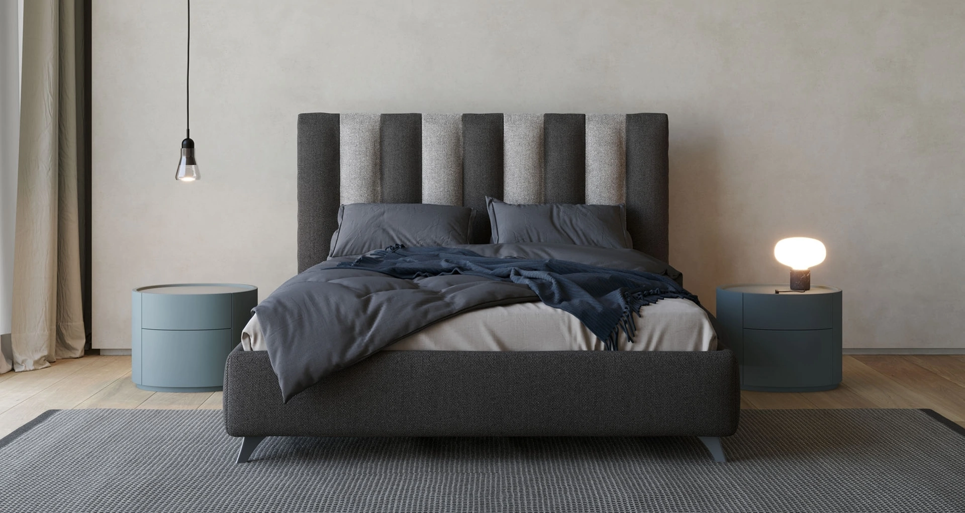 Il Letto con testiera alta River di Giessegi è una delle più originali soluzioni della firma, specialista del buon sonno, capace di garantire funzionalità, comodità e un design unico. Se desideri assicurarti il comfort più totale nei tuoi momenti di relax, scegli i Letti matrimoniali moderni in tessuto come il modello mostrato in foto. Nel nostro sito potrai trovare le proposte più valide dei migliori brand specializzati nell'arredo per la zona del riposo, con un’ampia possibilità di personalizzazione in quanto a colori e abbinamenti, accessori e molto altro. La camera da letto è il luogo di casa che più interpreta l'animo di chi la usa, interno in assoluto dedicato al relax, alla distensione e alla riservatezza.
