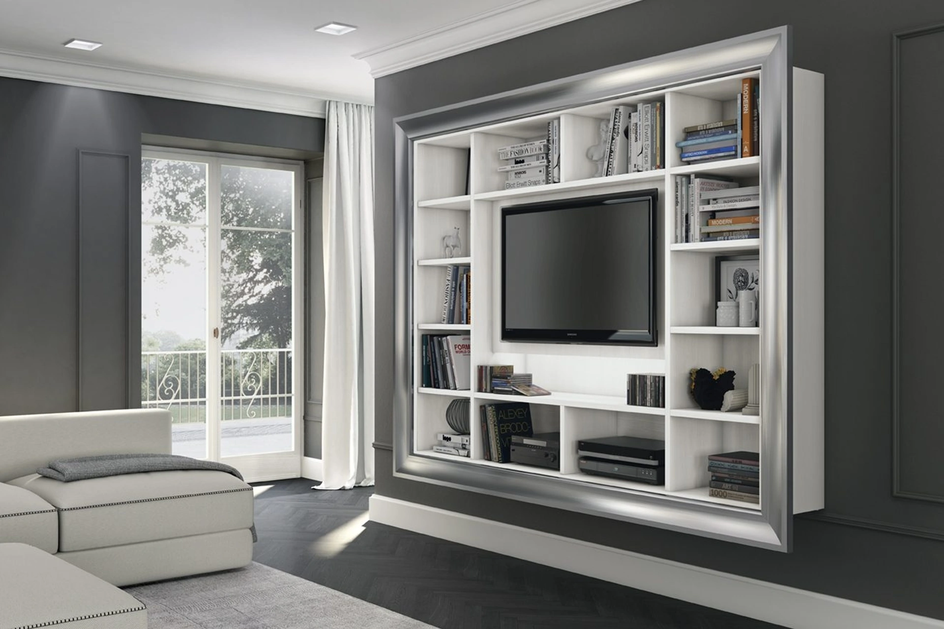 Scopri presso i migliori punti vendita di mobili le più esclusive Librerie sospese, tra cui anche quelle design in melaminico ideali per arricchire soggiorni di ogni tipo. Mantenere la zona giorno in ordine non è il suo unico compito: con questa libreria potrai realizzare il concept d'arredo che hai sempre voluto sfruttando bene ogni spazio. Il modello visibile in foto è la Libreria Arcadia L007 di Colombini Casa, uno dei mobili soggiorno realizzabili su misura per te del noto e conosciuto marchio di Arredamento Casa a Tivoli. Decorare la zona giorno è facile se si sceglie la migliore libreria per ammobiliare il proprio spazio, ciò che conta è che sia capiente e gradevole.