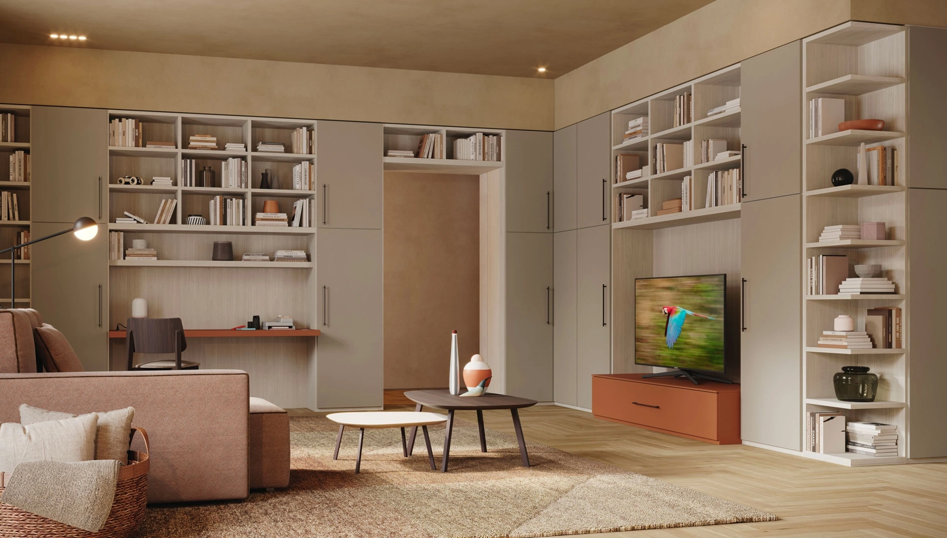 Le Librerie a muro Giessegi sono disponibili in varie forme: ad angolo, in linea, sospese e realizzabili su misura per te con differenti elementi, mensole e vani. Il soggiorno è, per eccellenza, la zona della casa in cui ci si dedica al relax ogni giorno, conversando con familiari e amici, riposando in solitudine oppure guardando la TV. Contattaci per info e preventivi sul modello mostrato in foto: se vuoi completare stanze moderne, allora questa libreria dalle linee decise fa per te. Le Librerie moderne sono sempre molto amate per predisporre la zona giorno e le pareti, mixando al meglio doti di praticità e design.