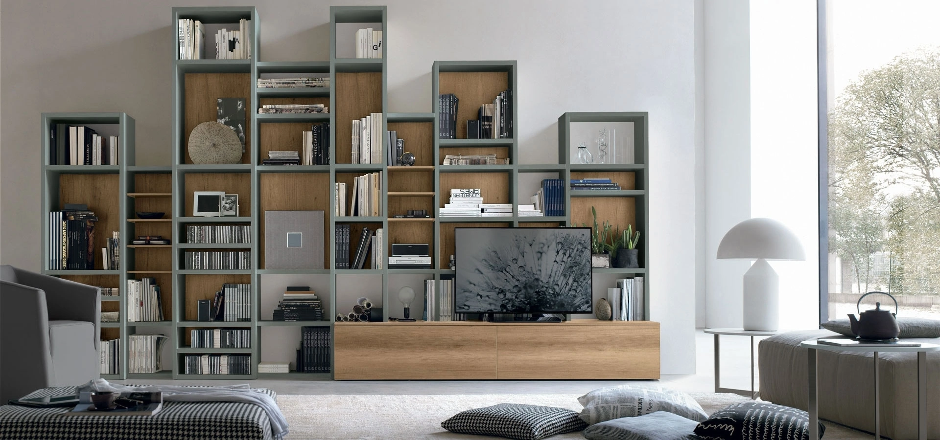 Mantenere il soggiorno in ordine non è il suo unico compito: con questa libreria potrai realizzare il concept d'arredo che hai sempre voluto sfruttando bene ogni spazio. Scopri presso i migliori negozi di mobili le più esclusive Librerie componibili, tra cui anche quelle moderne in melaminico ideali per completare soggiorni di ogni genere. Organizzare il soggiorno non è difficile se si sceglie la migliore libreria per progettare il proprio spazio, ciò che importa è che sia capiente e gradevole. Il modello mostrato in foto è la Libreria Atlante UNIT AT220 di Tomasella, uno dei mobili soggiorno realizzabili su misura del noto e conosciuto marchio di Arredamento Casa a Tivoli.