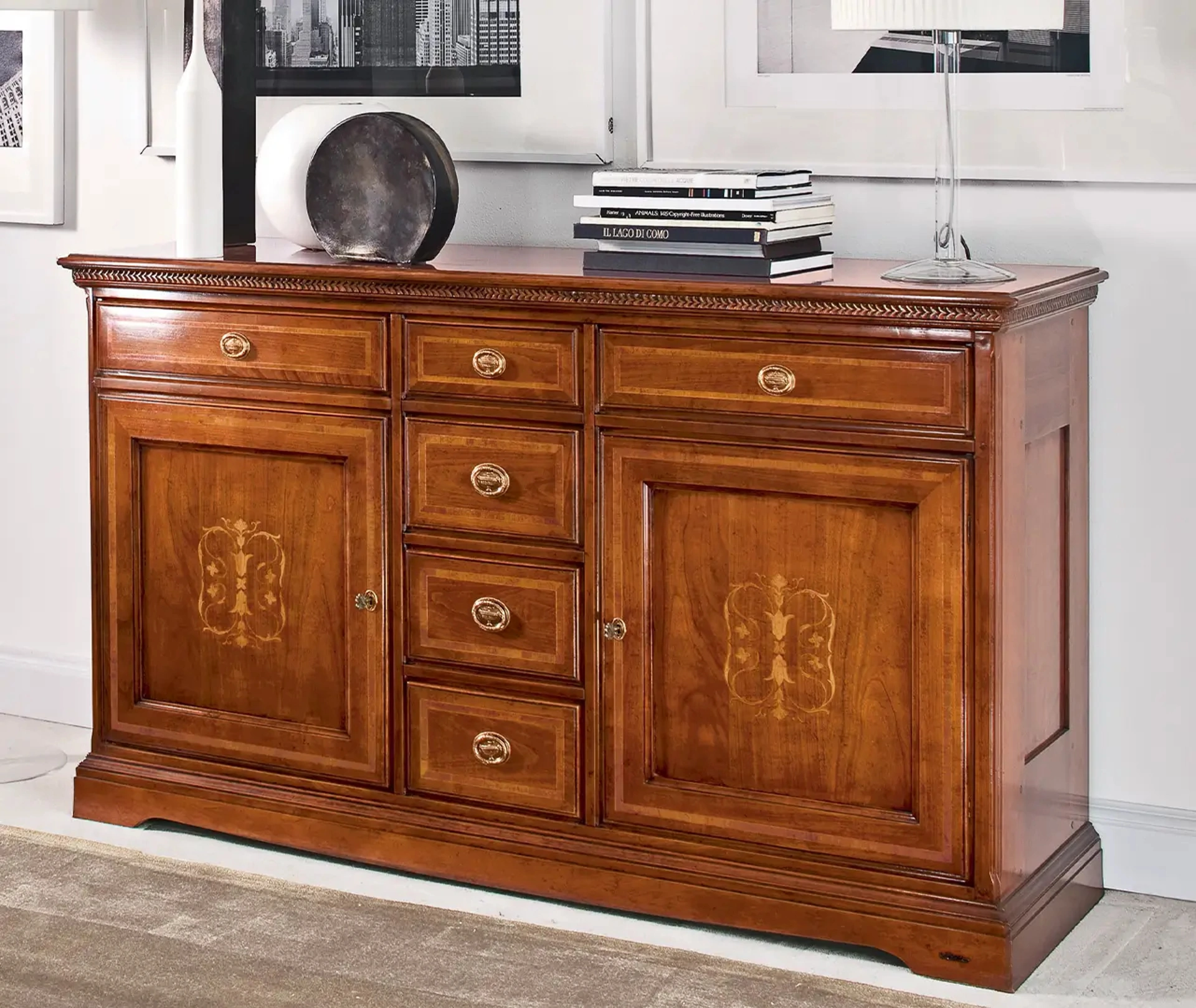 Per un soggiorno o una zona pranzo che si rispetti, scegli questa Madia classica Camelia di Le Fablier in legno tra le diverse composizioni classiche della firma. Ricorda che molto spesso ospiterai a casa familiari e amici per qualche ora in compagnia: è imprescindibile che lo spazio sia ben gestito e di grande valore estetico. Se vuoi una madia in legno da collocare nella tua casa, non lasciarti sfuggire l'occasione di toccare con mano le nostre esclusive composizioni arredative. L'acquisto delle Madie per la zona giorno o per la zona pranzo ha a che fare con lo spazio disponibile, ma coinvolge anche lo stile del locale e le proprie necessità.