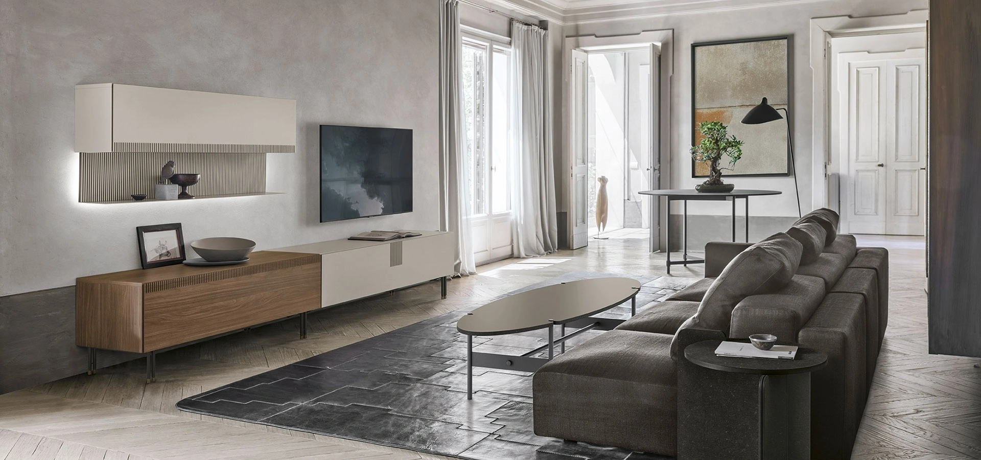 Nel living servono arredi che ci accompagnino nella quotidianità in casa, semplificando i gesti che compiamo nel quotidiano e creando peculiari atmosfere. Che tu desideri riporci la TV, libri nonché oggettistica varia, un mobile come quello presente in foto saprà vestire gli ambienti domestici valorizzandoli appieno. Utili e di grande fascino, i nostri Mobili Porta Tv Tomasella in melaminico per ambienti moderni sapranno ottimizzare gli spazi personalizzandoli. I Mobili Porta Tv, se selezionati con cura, servono per ultimare il tuo soggiorno fungendo da multifunzionale piano d’appoggio per la tua oggettistica, per la TV e quant'altro.