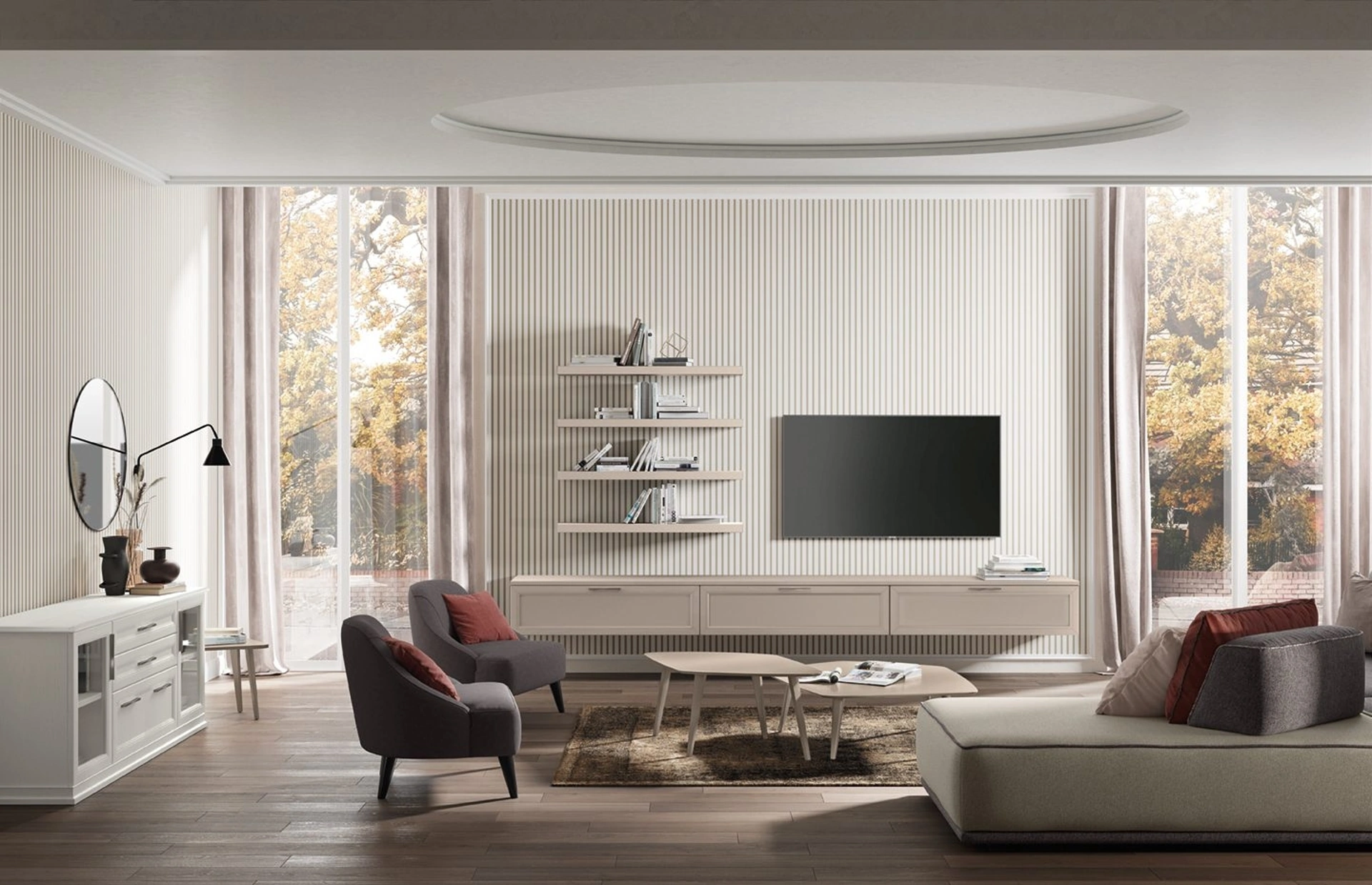 Scopri la nostra serie di mobili per il living del marchio Colombini Casa e potrai arredare la tua abitazione con uno stile unico e la contenitività di cui hai bisogno. Siamo rivenditori di Arredamento Casa a Tivoli in melaminico dei migliori produttori: contattaci e scopri di più! Studiando le più attuali e particolari problematiche abitative, selezioniamo solo le più belle e interessanti soluzioni d’arredo in commercio, realizzabili su misura in base alle più personali richieste. La Parete Attrezzata Arcadia L009 di Colombini Casa diventa presenza caratterizzante in stanze di ogni genere grazie ai suoi accessori modulari e alla possibilità di valutare texture, materiali, cromie, conformazioni e tanto altro.