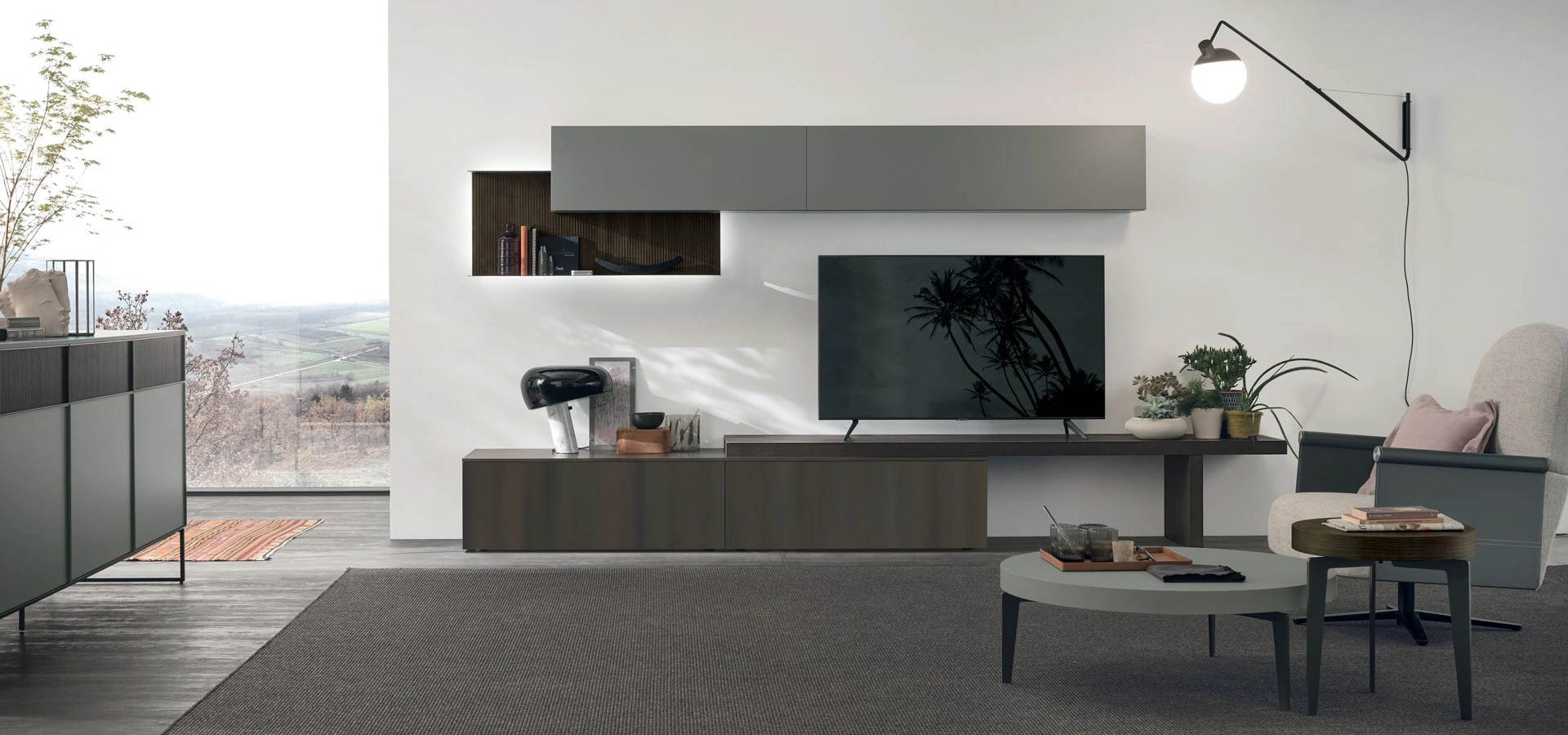 La Parete Attrezzata Atlante UNIT AT109 di Tomasella nell'immagine possiede grandi doti di componibilità e diverse possibilità di caratterizzazione: scopri la parete attrezzata qui visibile e contattaci per maggiori informazioni e preventivi. A muro oppure freestanding per organizzare al meglio un open space, le più esclusive composizioni d’arredo sul mercato arredano la zona giorno usufruendo al meglio di lo spazio disponibile. Dai valore ai tuoi interni con le Pareti Attrezzate moderne di Tomasella: nel nostro showroom troverai mobili ed elementi accessori di design, in materiali di prima scelta e dei migliori brand.