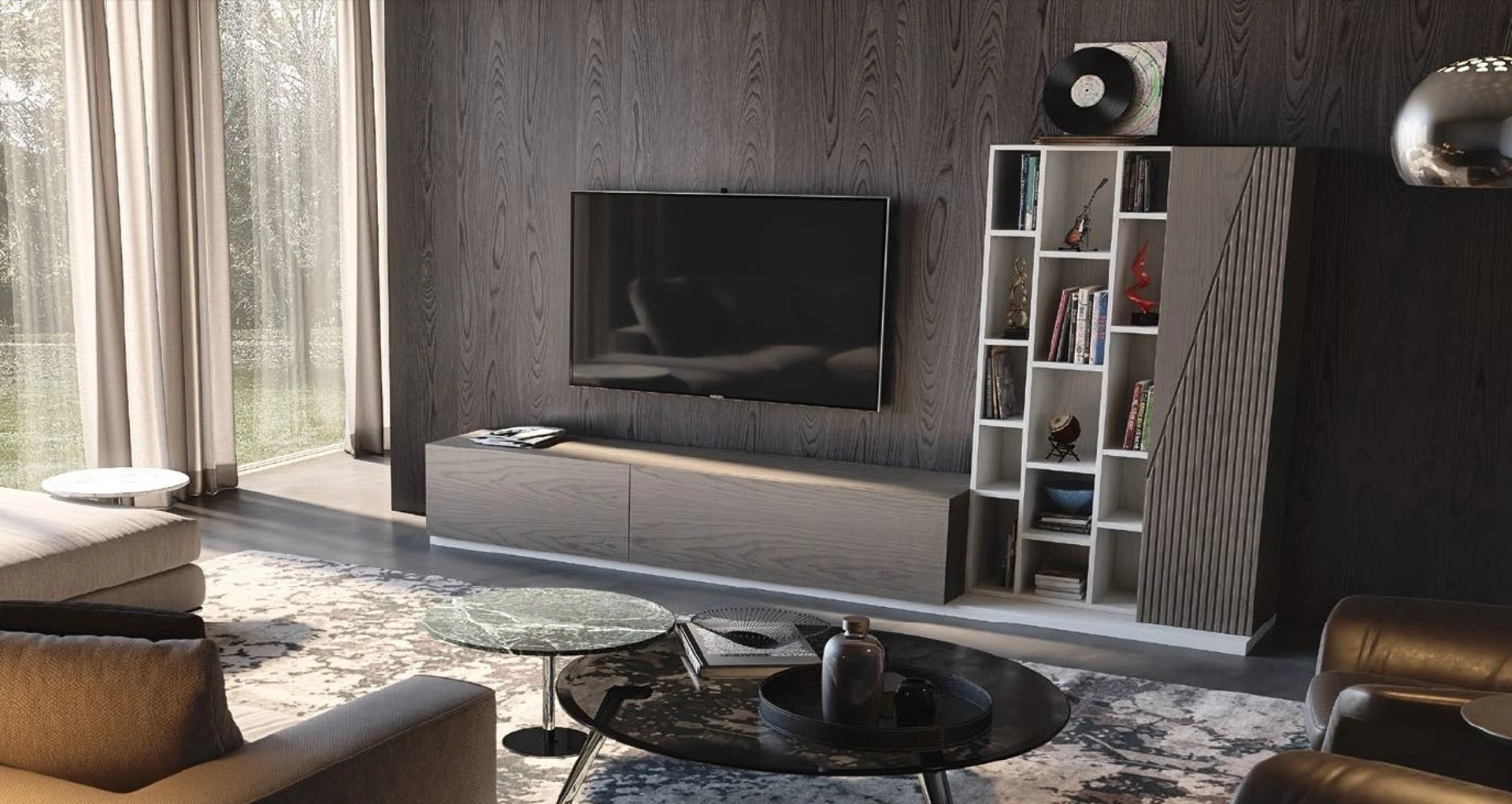 Questa parete attrezzata è una delle soluzioni del brand e ti permetterà di arredare il living secondo le più personali esigenze abitative. Attraverso un gioco dinamico di accostamenti fra elementi a giorno o vani chiusi, le Pareti Attrezzate moderne arredano il living sfruttando bene ogni spazio. Le Pareti Attrezzate hanno assunto un posto di primo piano nella zona giorno delle nostre case: sono mobili multifunzionali e salvaspazio sempre realizzabili su misura.