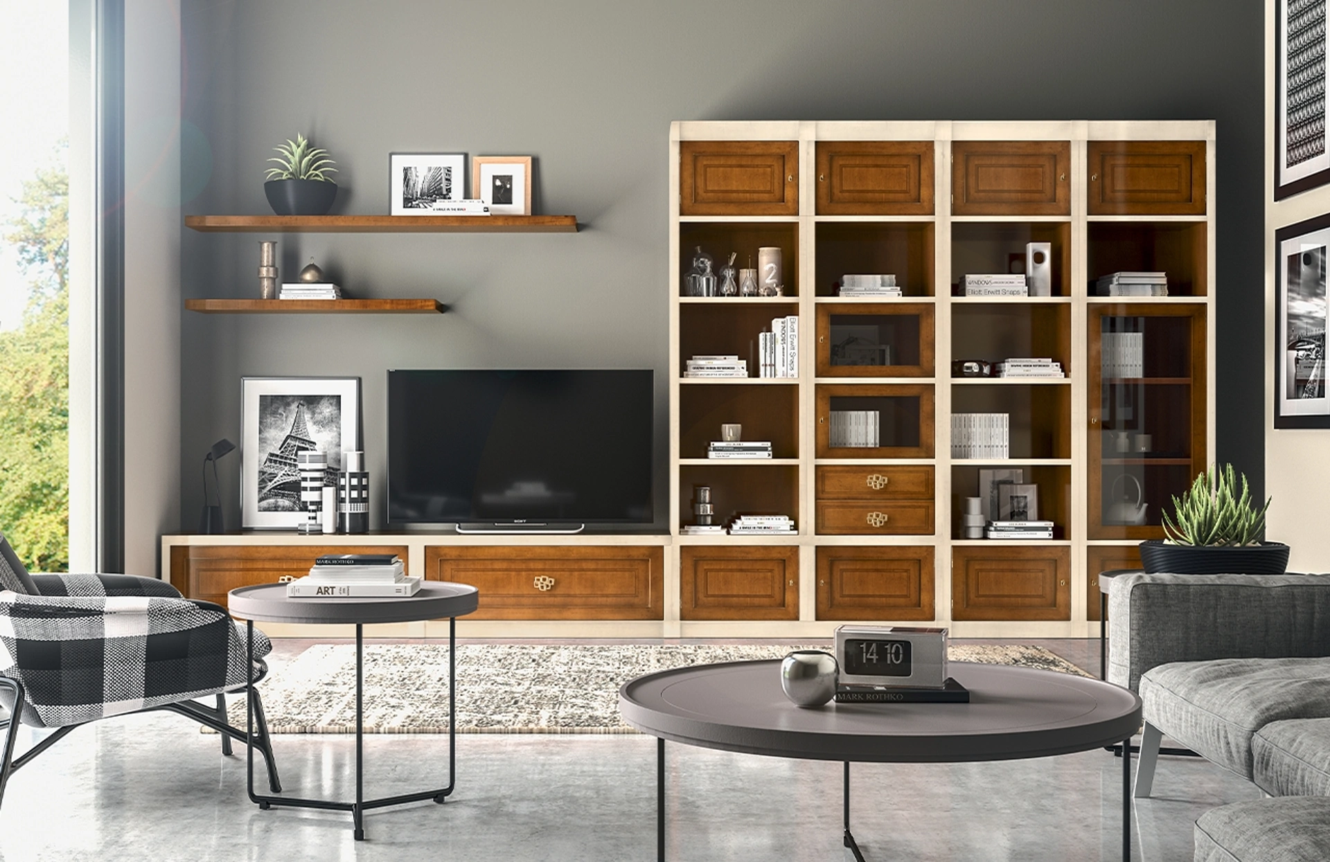 Attraverso un gioco dinamico di accostamenti fra elementi a giorno o vani chiusi, le Pareti Attrezzate classiche arredano il soggiorno usufruendo al meglio di ogni spazio. Questa parete attrezzata è una delle soluzioni della marca e ti permetterà di ammobiliare il living secondo le più personali problematiche abitative. Le Pareti Attrezzate hanno conquistato un posto fondamentale nella zona giorno delle nostre case: sono mobili multifunzionali e salvaspazio sempre realizzabili su misura.