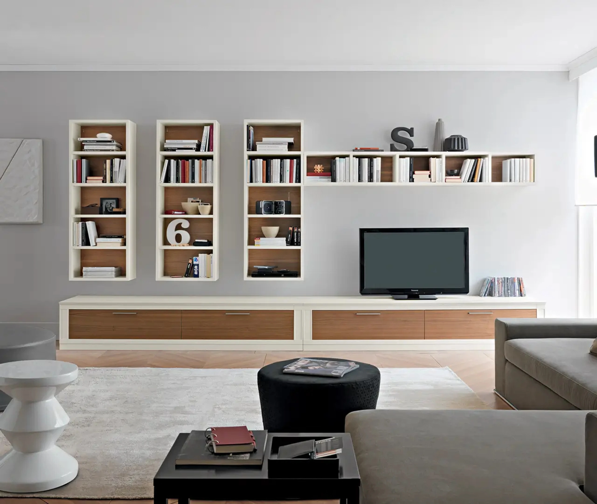 I mobili soggiorno in legno dalle linee moderne come il modello nell'immagine sono davvero poliedrici e capaci di ammobiliare la zona giorno usufruendo al meglio di ogni angolo. Dato che il soggiorno deve essere uno spazio agevole e bello da vedere, sono indispensabili alcuni mobili belli e pratici come le Pareti Attrezzate. La Parete Attrezzata Melograno composizione 28 di Le Fablier nell'immagine è una tra le più originali soluzioni d’arredo sul mercato: l'alta componibilità e le diverse opportunità di progettazione la rendono pratica e sofisticata. Le Fablier produce inediti modelli di mobili soggiorno, diversi per stile e conformazioni, finiture e elementi: scopri nel nostro showroom l'Arredamento Casa a Tivoli dei migliori produttori.