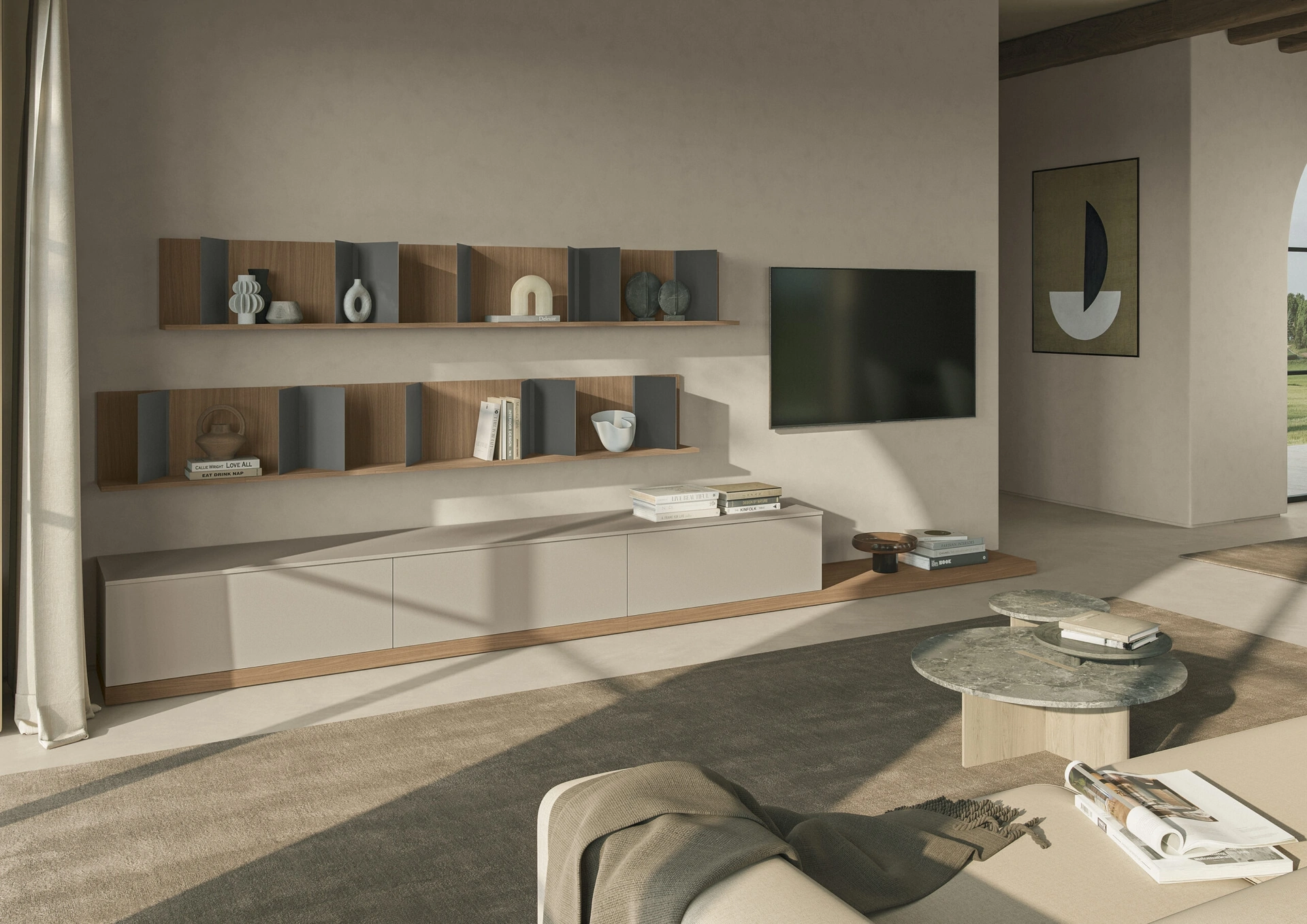 Per informazioni e preventivi sulla Parete Attrezzata Night & Day L01NS di Colombini Casa in foto contattaci! Il modello proposto è realizzato in melaminico, ma grazie ad un'infinità di finiture, tonalità e conformazioni, potrà adattarsi a stili di ogni tipo. Attraverso un gioco dinamico di accostamenti fra accessori a giorno o vani chiusi, le Pareti Attrezzate moderne arredano il soggiorno valorizzando ogni spazio. Le Pareti Attrezzate hanno conquistato un posto importante nella zona giorno delle nostre case: sono mobili plurifunzionali e salvaspazio sempre realizzabili su misura.