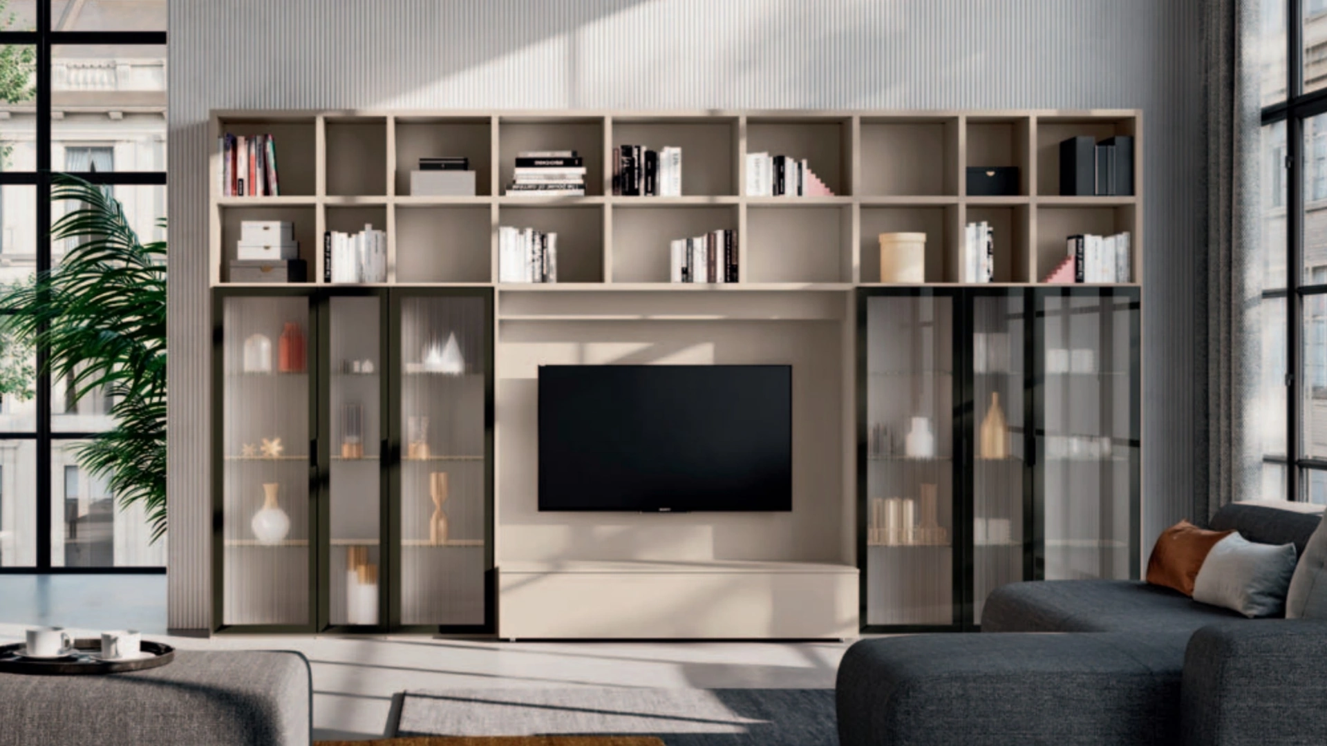 A muro oppure freestanding per organizzare al meglio un open space, le più originali composizioni d’arredo sul mercato arredano il living sfruttando bene lo spazio disponibile. La Parete Attrezzata con ante battenti in vetro Day 24 di Orme in foto ha componibilità su misura e varie possibilità di personalizzazione: scopri la parete attrezzata qui visibile e contattaci per maggiori informazioni e preventivi. Per soddisfare le eterogenee problematiche abitative di ciascuno, brand mette a disposizione dei suoi clienti una ricca gamma Pareti Attrezzate moderne assai funzionali e connotate da un'estetica raffinata.