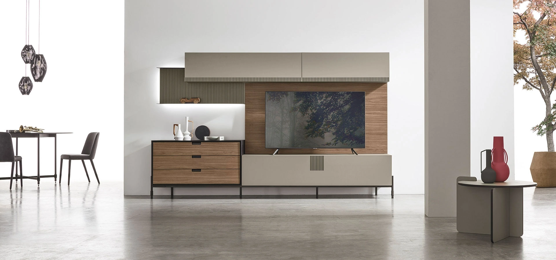 La Parete Attrezzata TIME UNIT TI 104 di Tomasella nell'immagine è una tra le più esclusive soluzioni d’arredo sul mercato: l'alta componibilità e le varie opportunità di progettazione la rendono funzionale ed esteticamente gradevole. Poiché il soggiorno deve essere uno spazio agevole e bello da vedere, sono necessari alcuni mobili belli e pratici come le Pareti Attrezzate. Tomasella propone innovativi modelli di mobili soggiorno, diversi per stile e forme, texture e elementi: scopri nel nostro punto vendita l'Arredamento Casa a Tivoli dei migliori brand. I mobili soggiorno in melaminico dalle linee moderne come il modello nell'immagine sono davvero versatili e capaci di ammobiliare la zona giorno valorizzando ogni angolo.