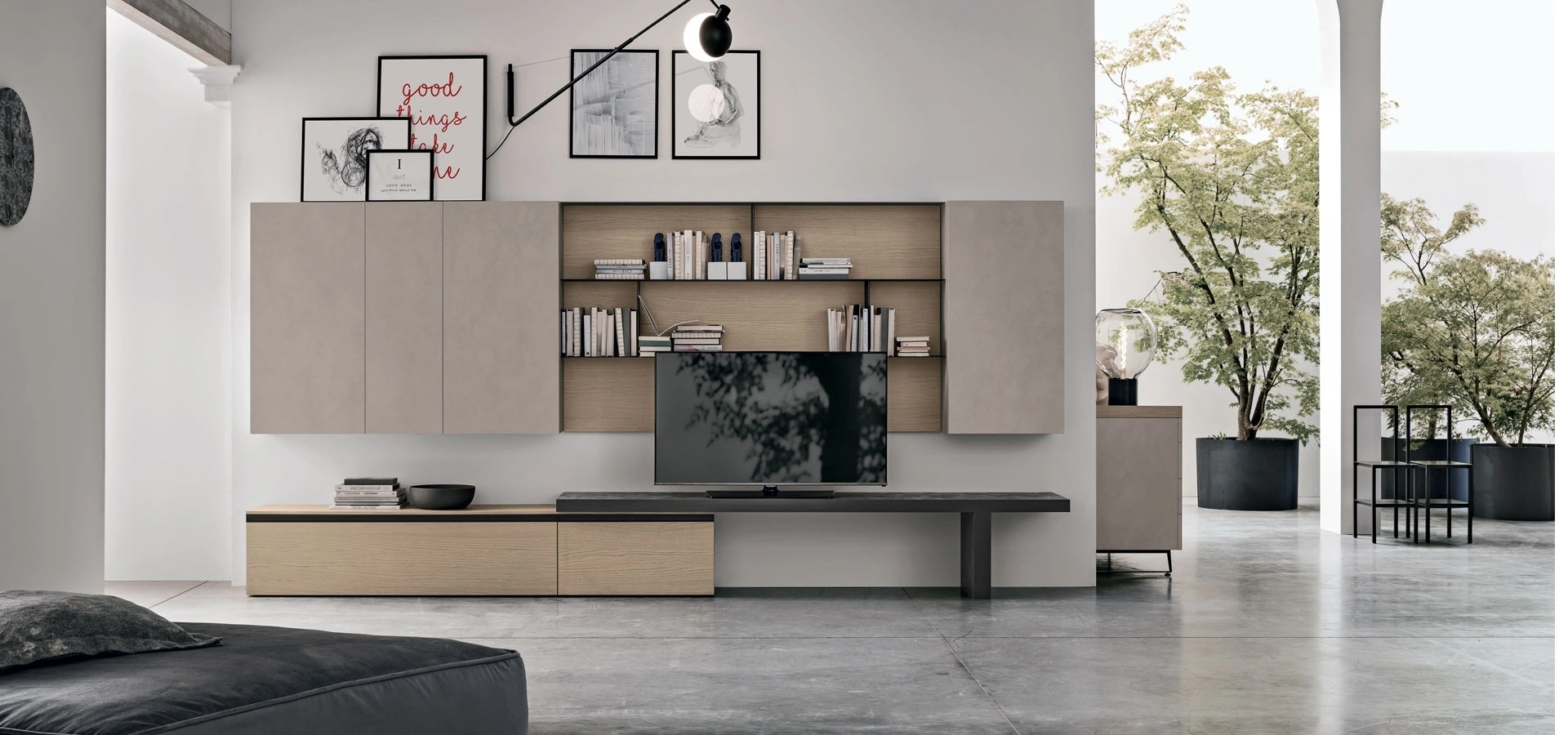 Un po’ librerie, un po’ mobili contenitori ed espositori: le Pareti Attrezzate sono ideali per sistemare uno spazio pratico e operativo. Questa proposta rappresenta tutta la qualità che il marchio assicura grazie a pluriennale professionalità e grande passione nel settore dell'arredo e del design. La Parete Attrezzata Atlante UNIT AT122 di Tomasella nell'immagine, realizzata in melaminico, risolve le più personali esigenze abitative di spazio e stile senza rinunciare alla ricerca stilistica. Anche in un soggiorno di dimensioni contenute, questo tipo di arredo riesce a organizzare al meglio gli spazi usufruendo al meglio di ogni angolo e assicurando l'alta componibilità tipica delle soluzioni moderne.