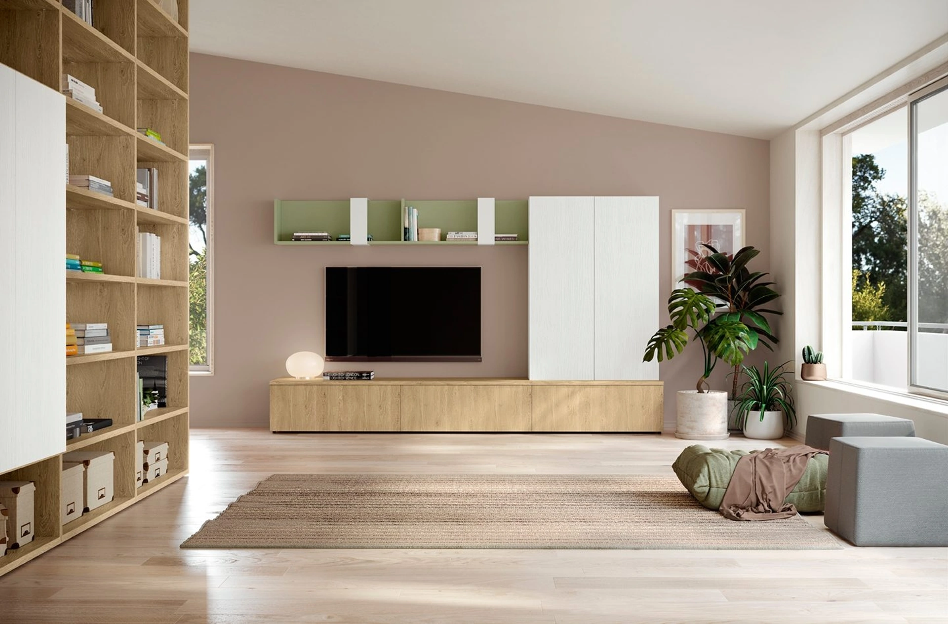 Attraverso un gioco dinamico di accostamenti fra componenti a giorno o vani chiusi, le Pareti Attrezzate moderne arredano il soggiorno ottimizzando ogni spazio. Questa parete attrezzata è una delle soluzioni della marca e ti permetterà di ammobiliare la zona giorno secondo le più particolari esigenze abitative. Le Pareti Attrezzate hanno conquistato un posto importante nella zona giorno delle nostre case: sono mobili multifunzionali e salvaspazio sempre realizzabili su misura.