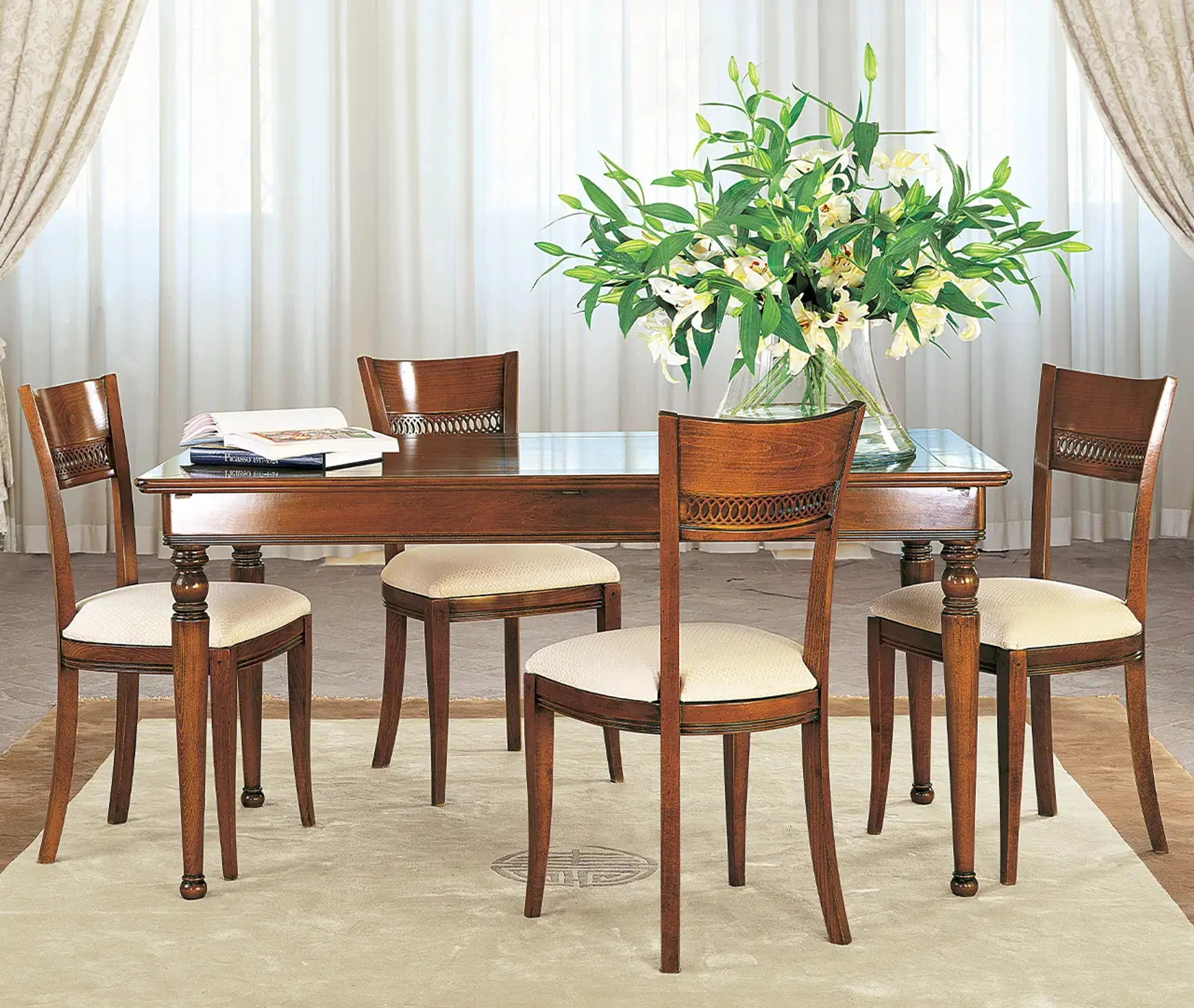 Un modello come quello nell'immagine, in abbinamento alle giuste sedute, saprà valorizzare il mood delle stanze domestiche dedicate per eccellenza alla convivialità. Il noto e conosciuto marchio Le Fablier, leader nella realizzazione di mobili in legno, ha scelto per la sua linea un'ampia gamma di finiture, linee e cromie. Ideali per dare vita a degli accostamenti unici con sedute e complementi classici, i Tavoli allungabili dell'azienda sono soluzioni tra le più esclusive in commercio, ideali per il living e la cucina. Tavolo allungabile Diaspro di Le Fablier: realizzato in materiali pregiati è connotato dalle linee decise del top e da un basamento elegante e sofisticato.