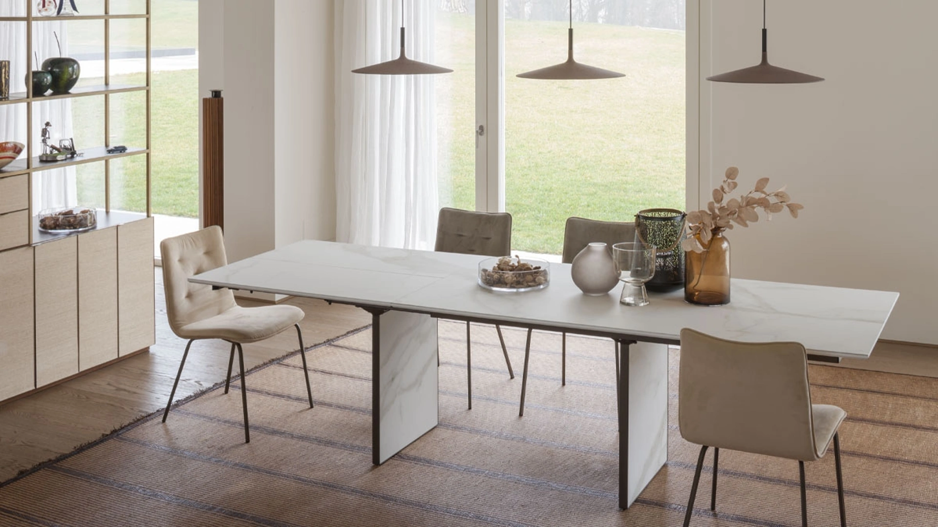 Se desideri un tavolo da pranzo di alto contenuto estetico, contattaci e ricevi info e preventivi sul modello visibile in foto. Un modello come quello nella fotografia, in abbinamento alle giuste sedie, saprà arricchire lo stile delle stanze di casa dedicate per eccellenza all'ospitalità. Il rinomato marchio Altacom, leader nella produzione di mobili in ceramica, ha scelto per la sua linea una vasta scelta di materiali, forme e cromie. Tavolo allungabile Magnum di Altacom: realizzato in materiali di prima scelta è connotato dalle linee decise del top e da un basamento elegante e raffinato.