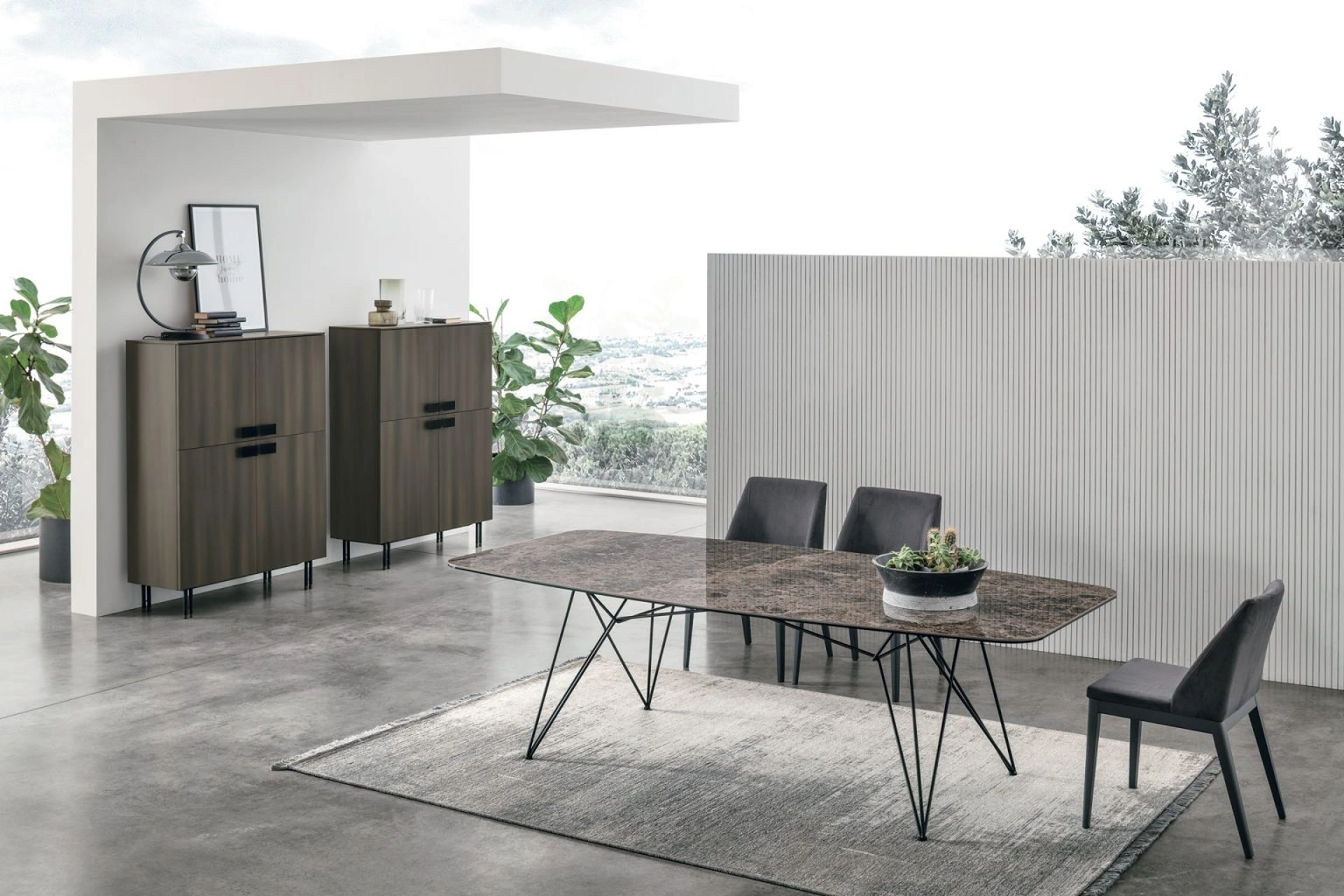 Se sei alla ricerca di un tavolo da pranzo di alto contenuto estetico, contattaci e ricevi info e preventivi sul modello mostrato in foto. Un modello come quello nell'immagine, in abbinamento alle giuste sedute, saprà impreziosire l'atmosfera delle stanze di casa dedicate per eccellenza alla socializzazione. Ideali per dare vita a degli accostamenti unici con sedute e complementi moderni, i Tavoli fissi dell'azienda sono soluzioni tra le più belle in commercio, ideali per il living e la zona cucina. Il rinomato brand Tomasella, leader nella produzione di arredi in gres, ha scelto per la sua linea un'infinità di materiali, forme e cromie.