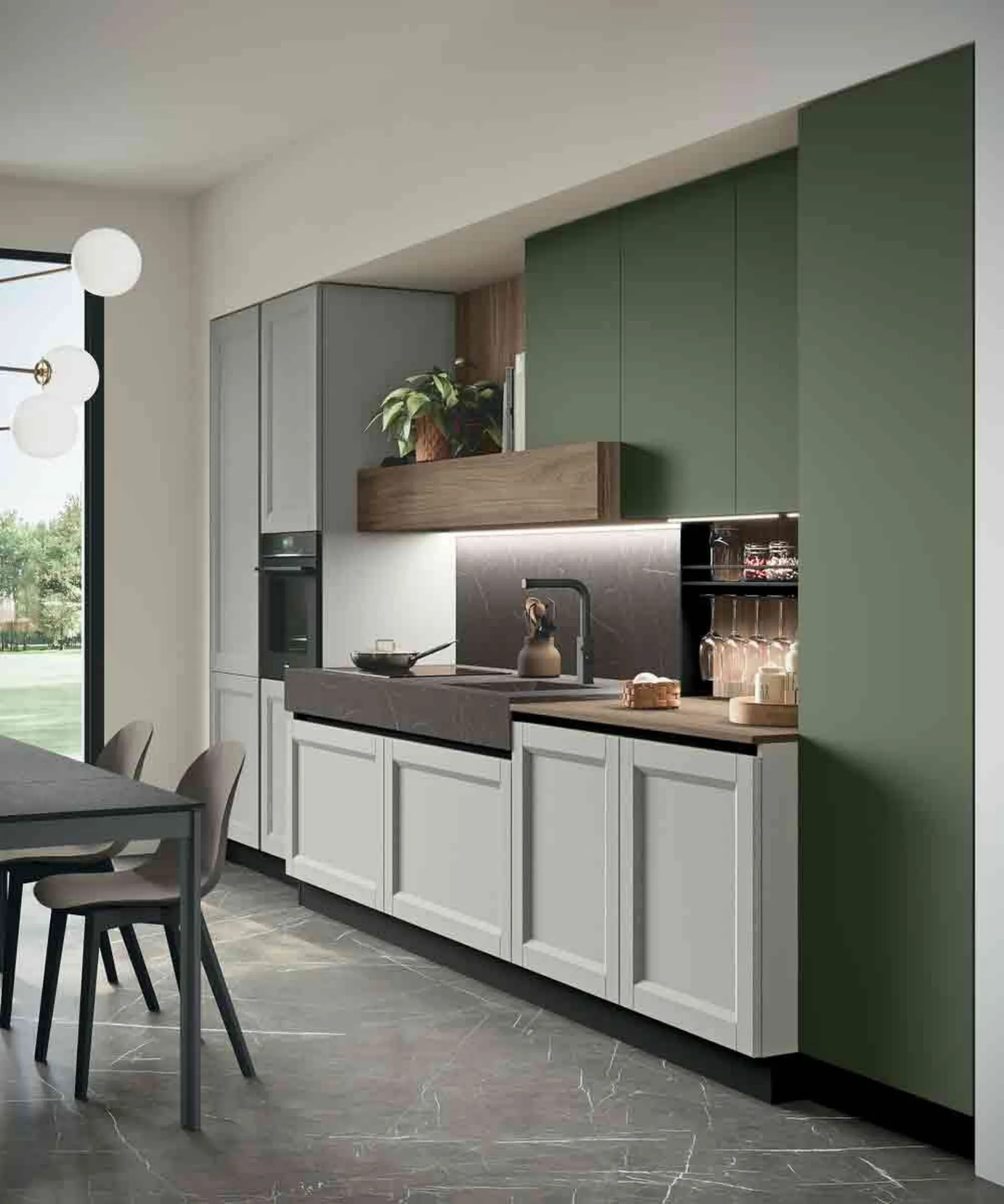Beverly di Stosa è una cucina classica molto speciale. Un progetto versatile nel quale lo stile tradizionale viene reinterpretato sulla base delle nuove esigenze del vivere contemporaneo: una lettura inedita, che riguarda l’estetica ma è anche riconducibile alla centralità che la cucina ha assunto nella concezione moderna.