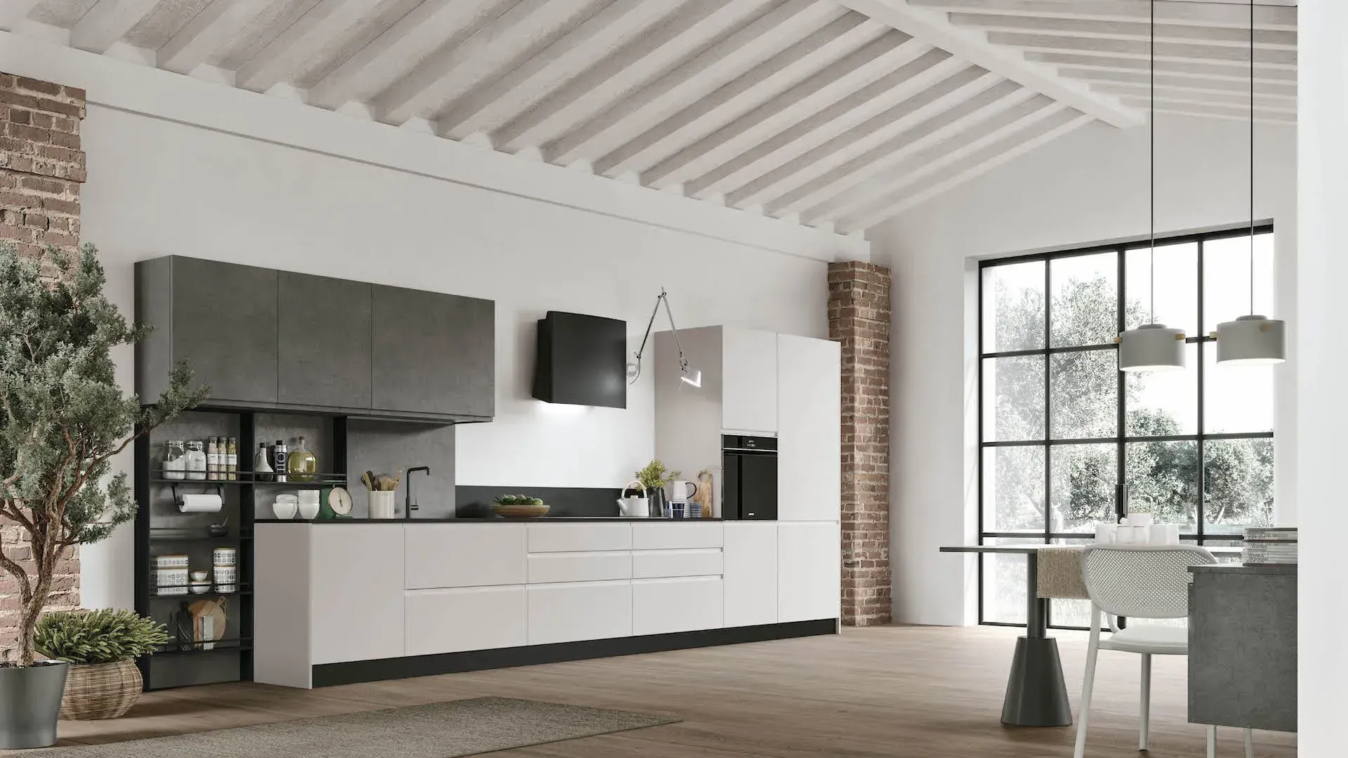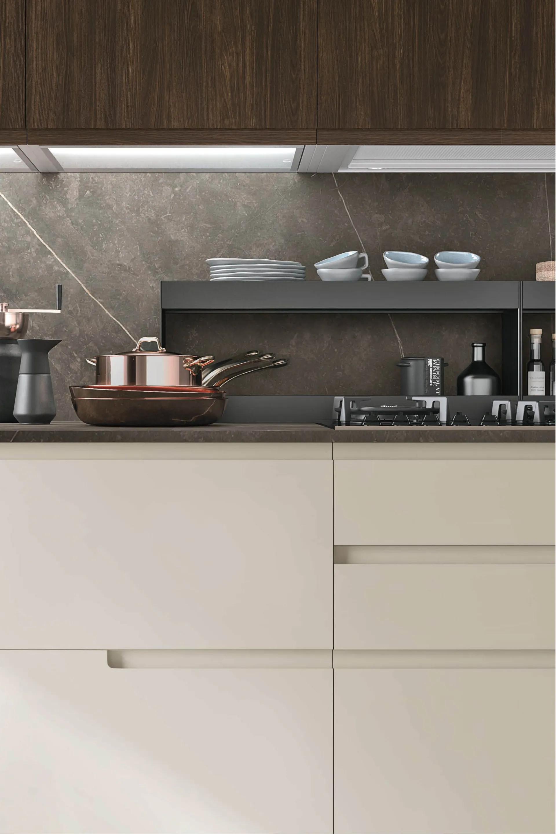 Karma si distingue per l’anta con presa maniglia integrata che definisce e decora la cucina con tre tipologie di apertura: maniglia totale, maniglia parziale e contropresa. Pensata per un pubblico amante dello stile pulito e in grado di dare massimo risalto ai contrasti materici e cromatici delle finiture.