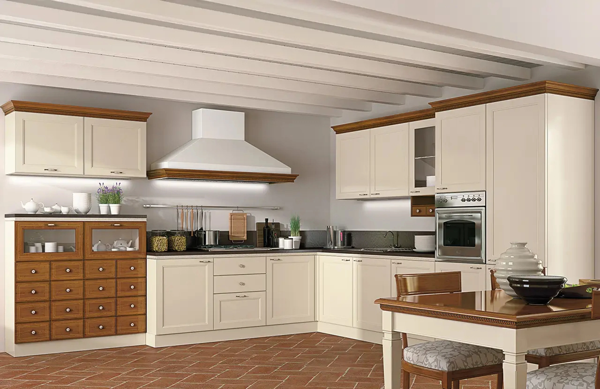 Scopri nel nostro punto vendita una ricca gamma di soluzioni del brand: la collezione completa Le Fablier ti aspetta! Solo con le più belle soluzioni ##Tipologia## potrai allestire lo spazio secondo le tue personali problematiche abitative ma in perfetto stile tradizionale. La Cucina Classica angolare I Ciliegi composizione 04 di Le Fablier nell'immagine presenta uno stile assai funzionale, elegante e raffinato, portavoce del tipico gusto romantico delle Cucine Classiche.